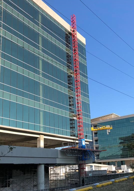 Les projets de construction de grande hauteur utilisent des mâts élévateurs pour transporter des matériaux lourds vers des étages surélevés, réduisant ainsi le besoin de grues.